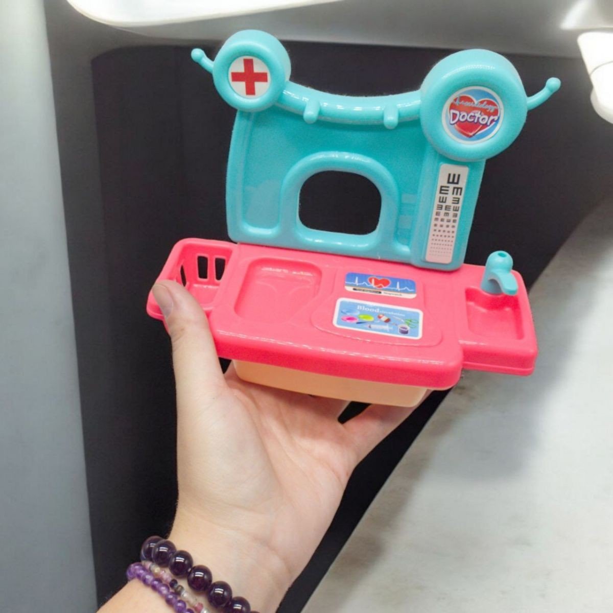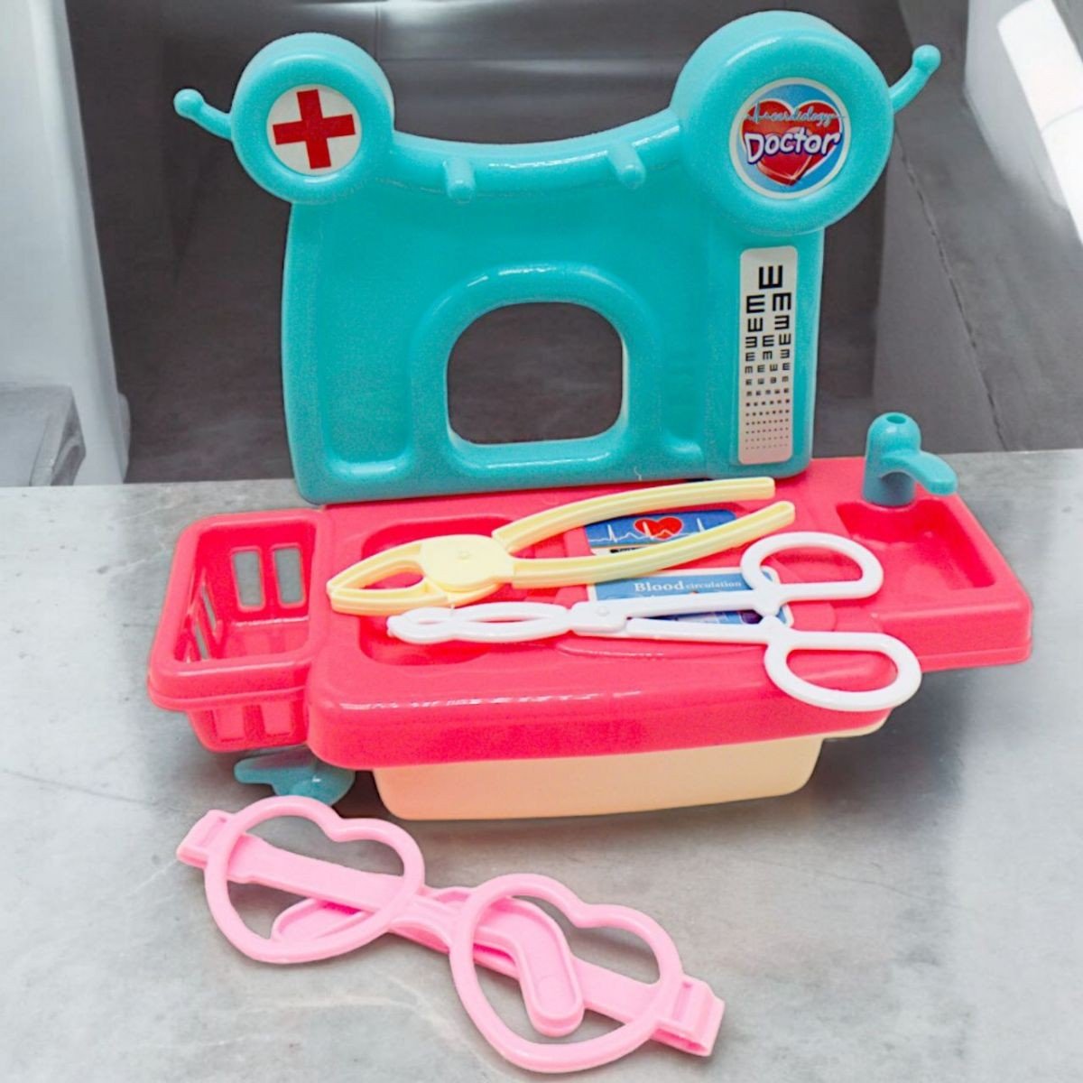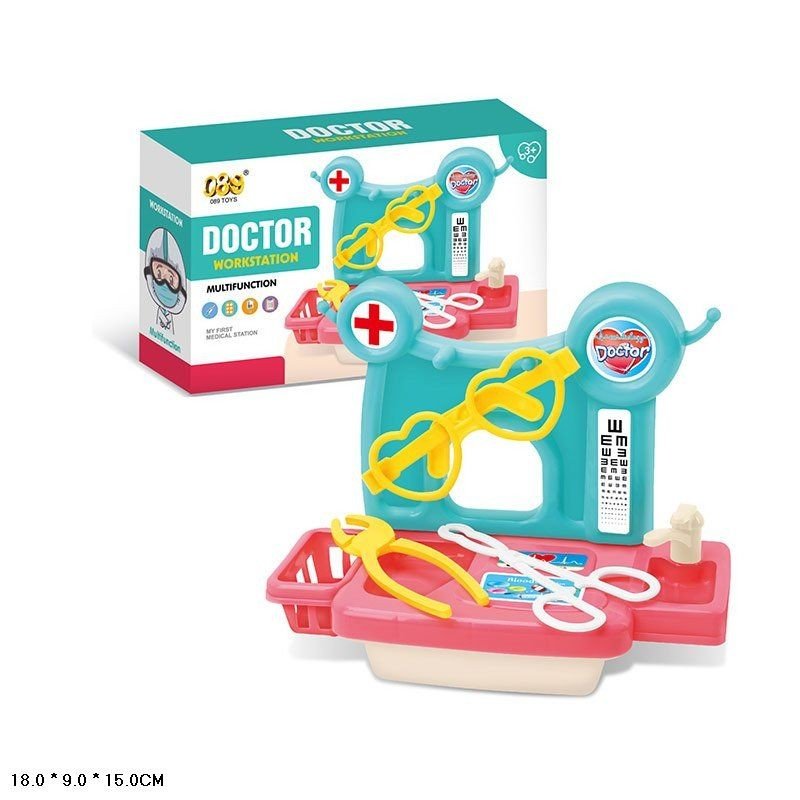 Набір у вигляді лікарського столика, що обладнаний спеціальним краном і кошиком для інструментів. На столику розташована таблиця для перевірки зору, яка дозволяє маленькому окулістові проводити різноманітні перевірки. У комплекті поставляються окуляри та два інструменти.