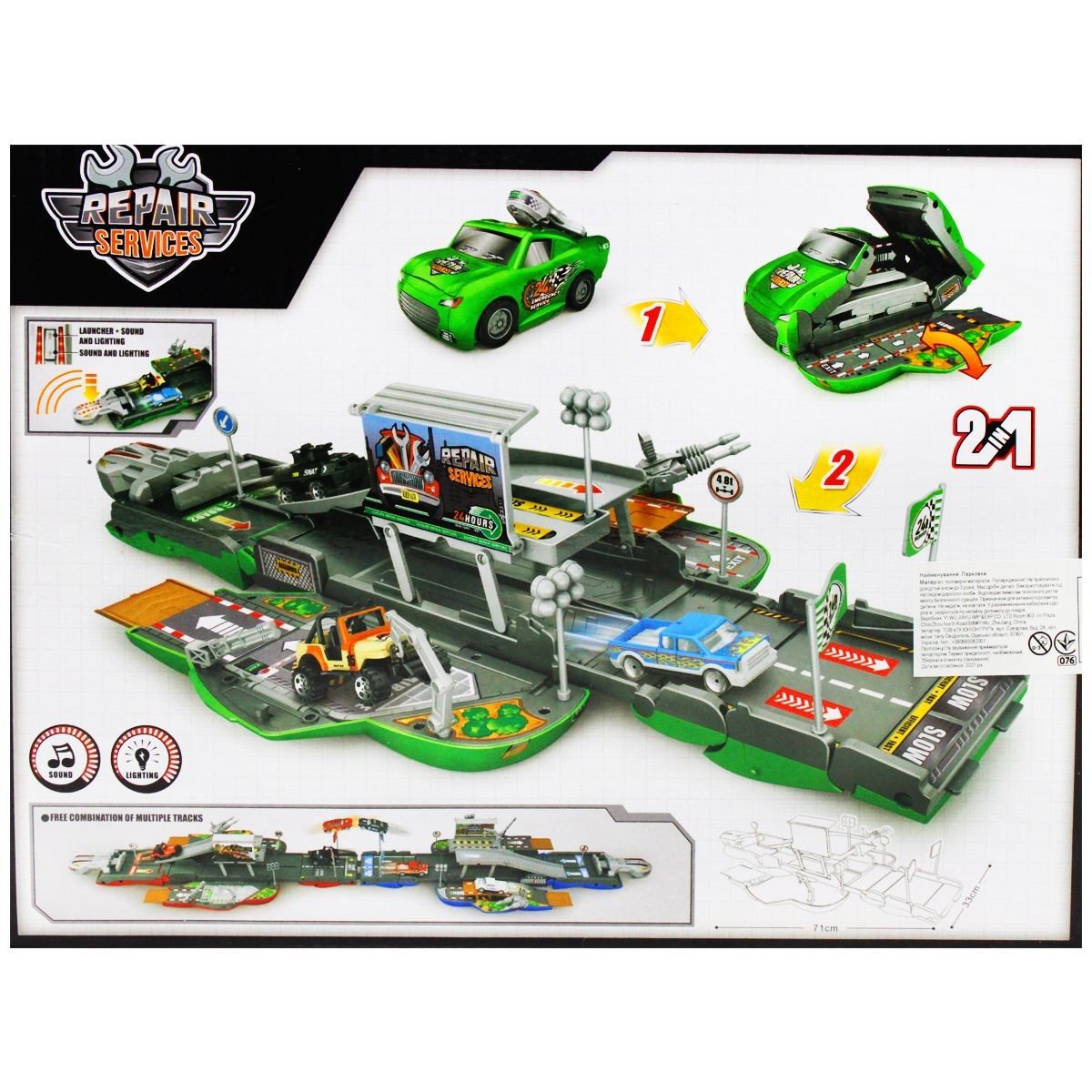 Бренд: WinTek Упаковка: Коробка Колір: Різнокольоровий Тип ел-тів живлення: Батарейки (AG13) Ел-ти живлення в комплекті: Так Вага з упаковкою: 1160 г Габарити в упаковці: 19 x 36.5 x 21.5 см Країна виробник: Китай Матеріал: Пластик Комплектація: Деталі паркінгу