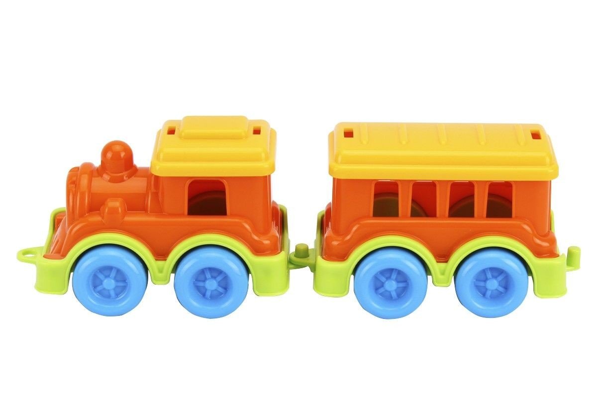 Милий ігровий набір для малюків – пластиковий поїзд та вагон, який можна до нього прикріпити. Іграшка виконана у яскравих кольорах, які обовʼязково зацікавлять дитину. Невеликого розміру – довжина поїзда у зібраному вигляді: 20 см, розмір одного вагона: 10х5х7 см. Виготовлено в Україні.