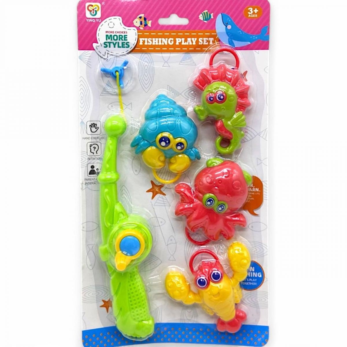 Яскравий та цікавий набір для дитячої риболовлі! У комплект входить вудка-спінінг та 4 морські мешканці, яких потрібно "зловити", підчепивши на гачок. Гра розвиває координацію, дрібну моторику та посидючість. Відмінний варіант для веселих ігор вдома та на свіжому повітрі.