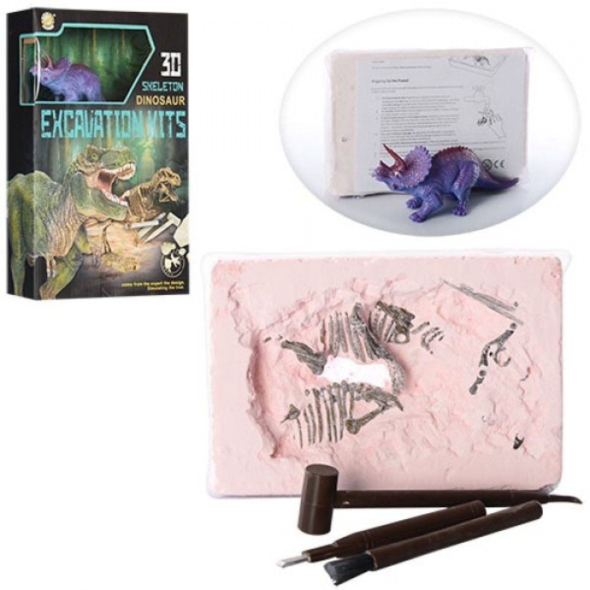 У цій коробці знаходиться пласт скам'янілої земної породи з цією копією скелета динозавра, а також археологічний набір інструментів, необхідних для проведення розкопок. Дорасочная інструкція, допоможе правильно підійти до процесу. Після розкопки можна зібрати фігуркудинозавра. Можна зібрати серію з різних динозаврів.