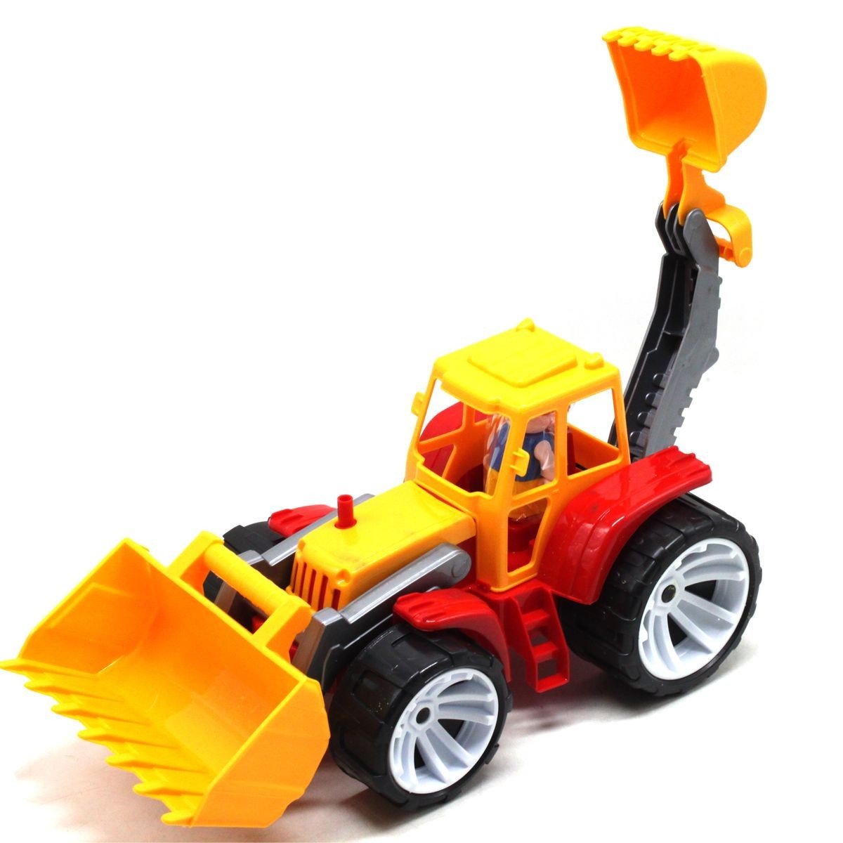 Пластикова іграшка "Трактор" буде чудовим подарунком для дитини. Розмір трактора – 37х16х19 см., діаметр коліс – 10.5 см. (задні), 9 см. (передні). Оснащений двома ковшами – більшим спереду і поменше – ззаду. Виконано з якісного та міцного пластику. Для дітей віком від 3-х років.