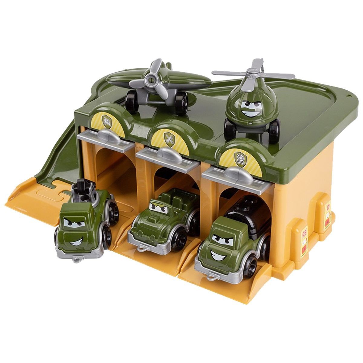 Великий ігровий набір, з яким можна зібрати велику військову базу з блокпостом, трьома машинками, літаком та гелікоптером. Дитина зможе зібрати великий гараж для машинок та посадковим майдачиком. Набір виконаний із міцного пластику. Для дітей віком від 3-х років.