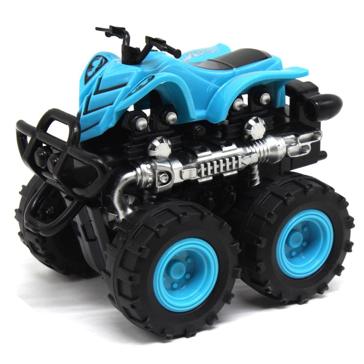 Пластиковий квадроцикл із великими колесами стане чудовим подарунком дитині. Іграшка інерційна, швидко розганяється та їздить на великі відстані, легко долає перешкоди. Розмір іграшки 11х9х9 см. Діаметр коліс 4.5 см. Виконана з якісних та міцних матеріалів.