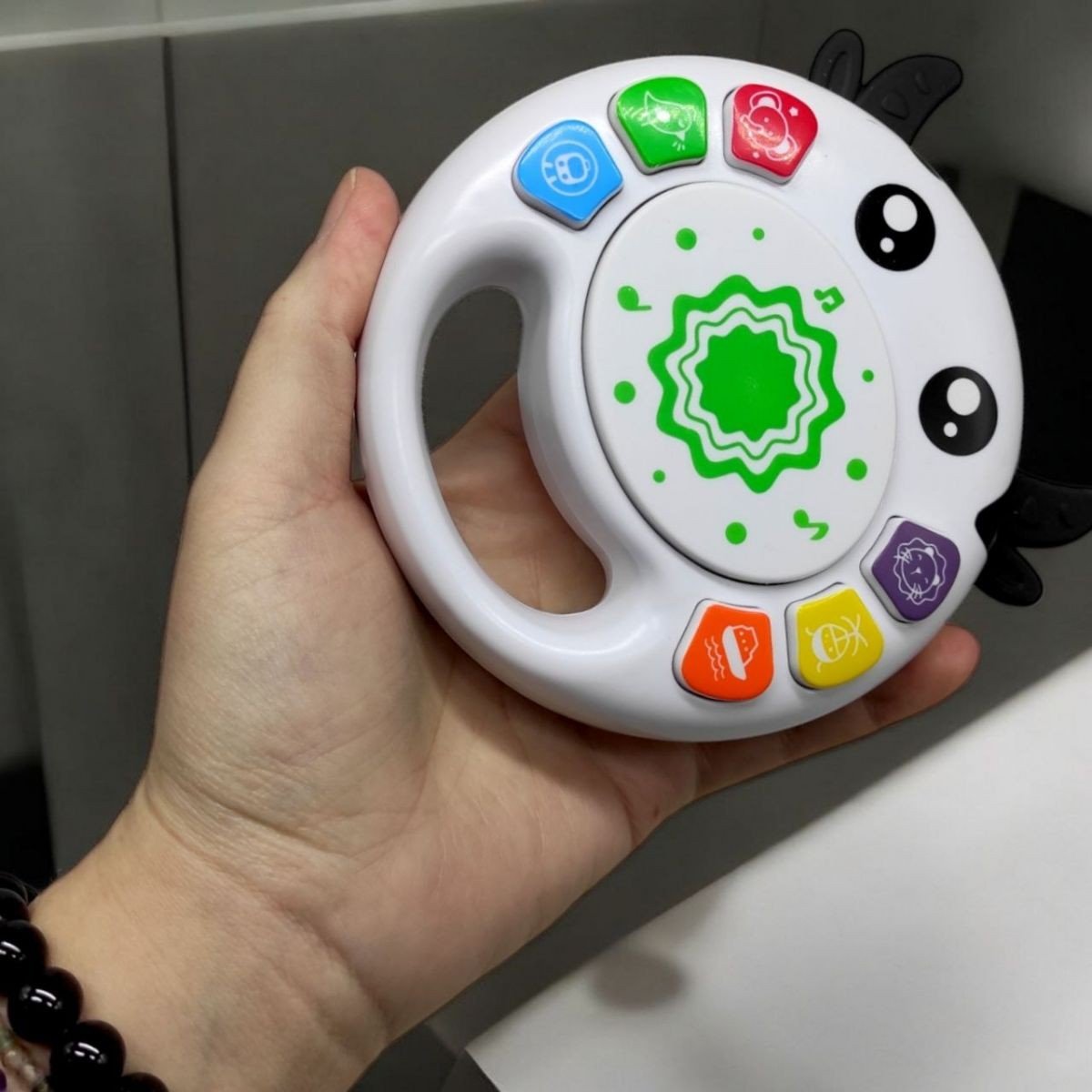 "Ритмічні пригоди" — це захоплююча музична іграшка, створена для найменших дослідників. Вона знайомить дитину зі звуками тварин і транспорту, вчить віршики та розповідає казки. Центральним елементом іграшки є барабан, який дозволяє малечі створювати веселі ритми, натискаючи на тематичні кнопки.Іграшка виготовлена у формі милої тваринки та озвучена українською мовою. Вона виконує пісні, відтворює різноманітні звуки й сприяє розвитку музичних здібностей дитини. Компактні розміри (12х3,5х13,5 см) забезпечують зручність у використанні, а матеріал — міцний первинний пластик — гарантує довговічність. Працює на трьох батарейках типу AAA (не входять до комплекту). Для дітей старше 6 місяців.