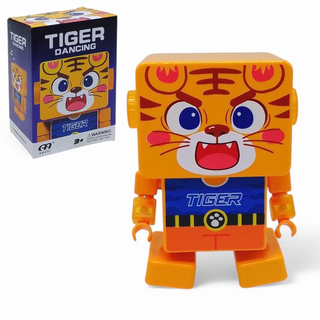 Тигр, що танцює – весела інтерактивна іграшка, яка підніме настрій! Він перебирає ніжками вліво та вправо, смішно рухає лапками та співає пісні англійською мовою. Яскраве підсвічування робить гру ще цікавіше. Іграшка має два режими роботи: тільки підсвічування чи весь функціонал – музика, танець та світло. На голові крутилки-тріскачки. Розмір – 15 см. Працює від 3-х батарейок АА (немає в комплекті).