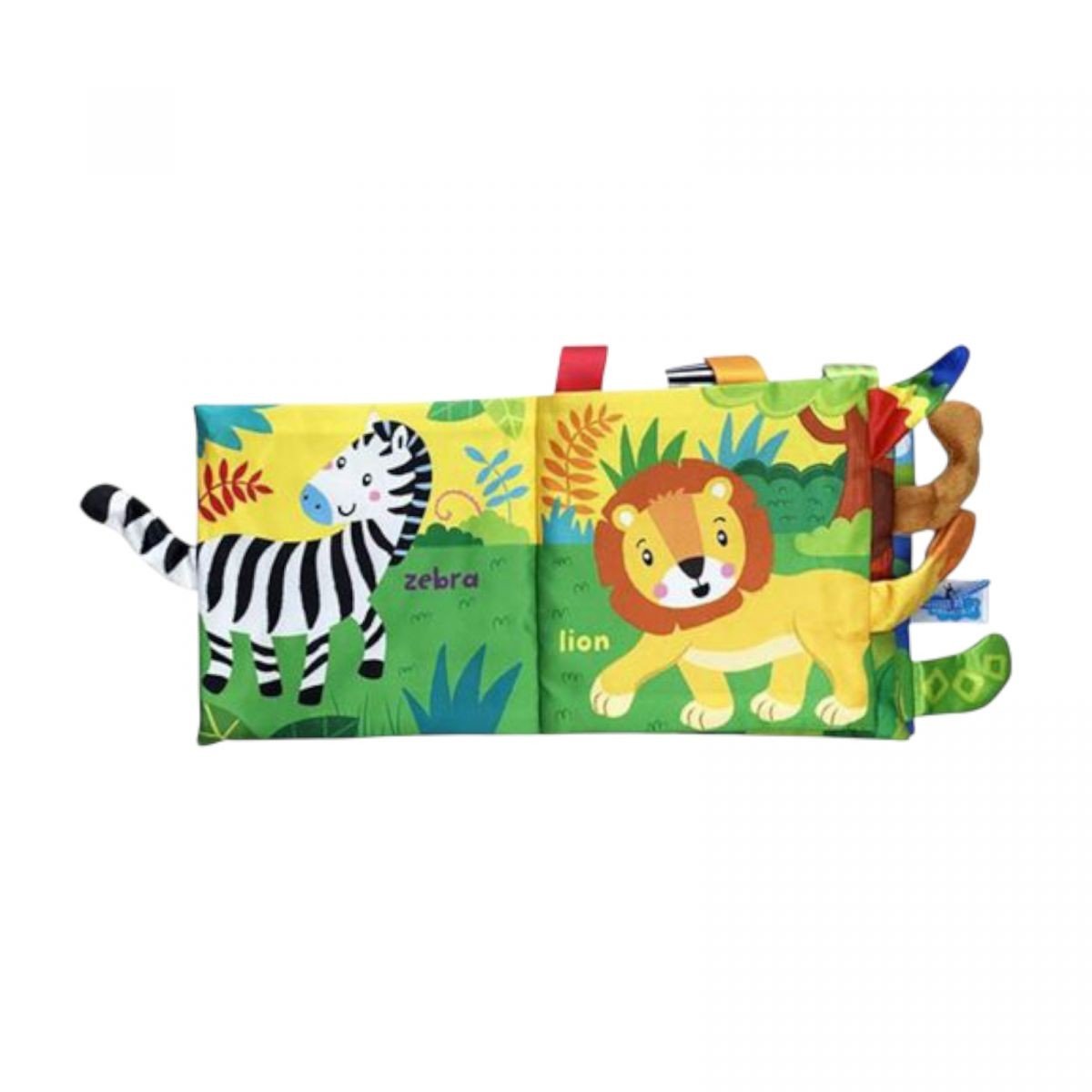 Інтерактивна розвиваюча книжка «Джунглі» заволодіє увагою дитини. Її елементи викличуть інтерес та стимулюватимуть концентрацію уваги. Книжка допомагає вивчати тварин, кольори та текстури. Допомагає розвивати різні органи чуття дитини з перших днів життя.