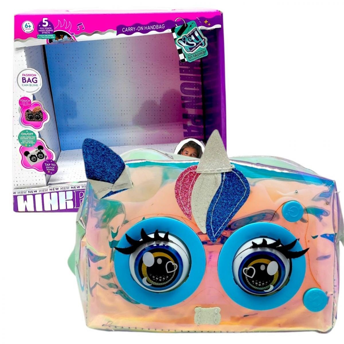 Популярна іграшка у вигляді інтерактивної сумочки з великими оченятами готова стати найкращою подружкою для малечі! Адже маленьке звірятко вміє кліпати, відтворювати різні звуки та навіть програвати музику! Сумочка має містке відділення для зберігання різних дрібничок. Ремінець іграшки можна відрегулювати, що допоможе зробити гру максимально комфортною. Особливості:- милий дизайн;- кліпає очима;- видає звуки та програє музику;- реагує на дотик голови;- кнопка увімкнення та кнопка музики знаходиться на сумочці;- сумочка має ремінець, довжину якого можна відрегулювати;- іграшка працює від 3-х батарейок типу “ААА” (не додаються);- сумочка виготовлена з якісних матеріалів, які є безпечними для здоров’я дитини.