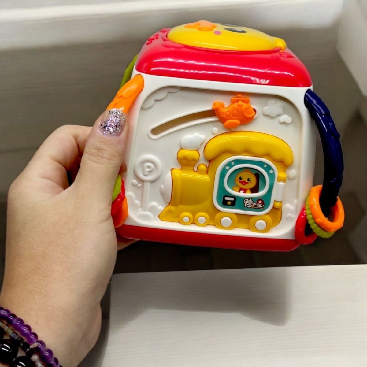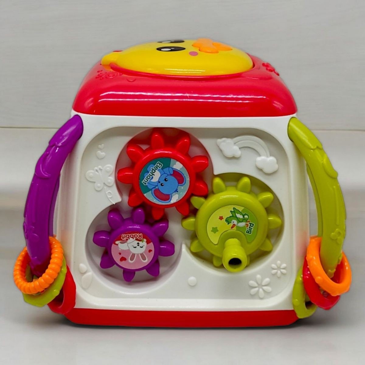 Бренд: TK Group Мова: українська Упаковка: Коробка Колір: Різнобарв'я Тип ел-тів живлення: Батарейки (АА) Кількість ел-тів живлення: 3 Ел-ти живлення в комплекті: Ні Вага з упаковкою: 410 г Габарити в упаковці: 15 x 16.5 x 16.5 см Країна виробник: Китай Матеріал: Пластик Комплектація: Інтерактивний мультибокс