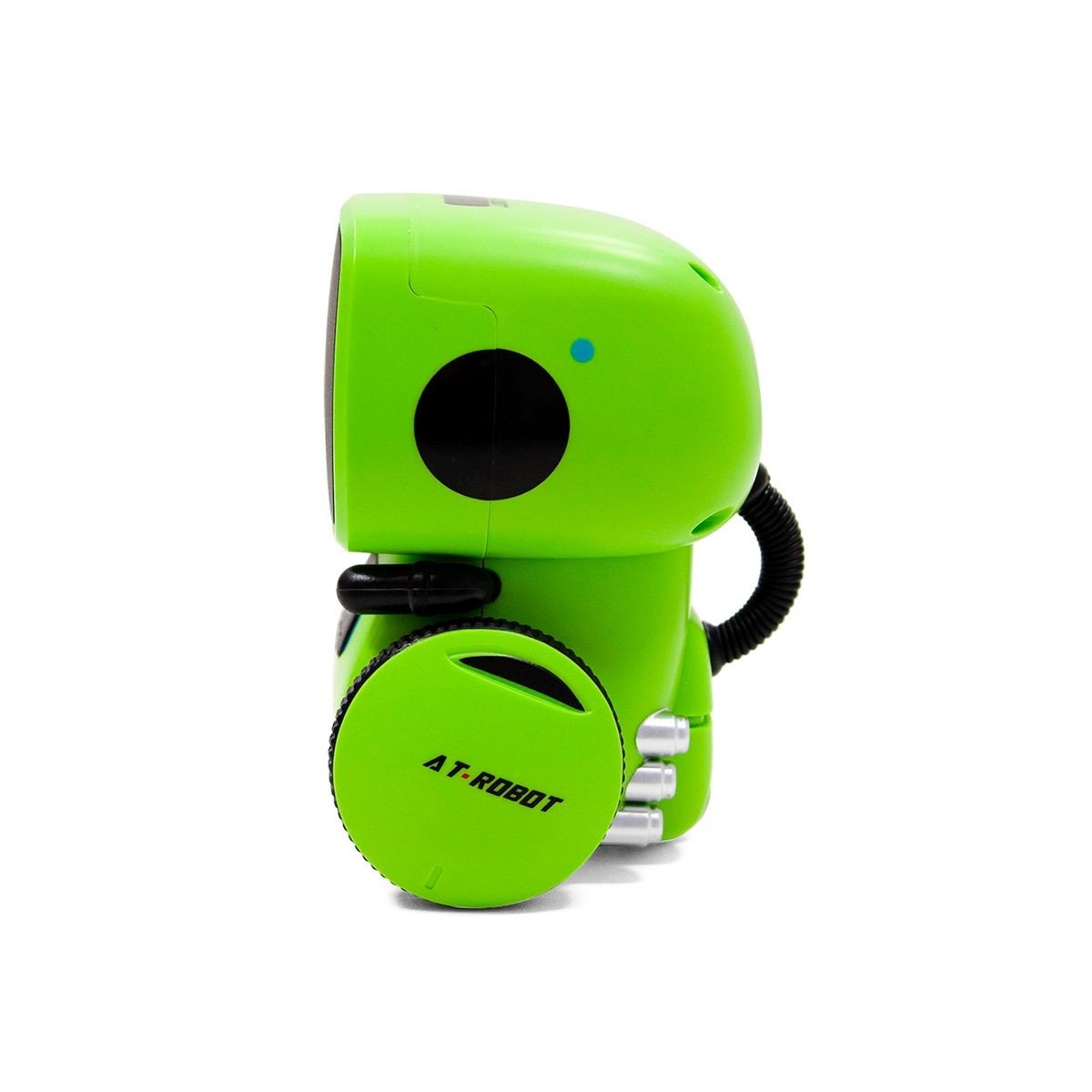 AT ROBOT - це розумний робот з різними видами керування. Розмовляє українською мовою. Реагує на голос: віддавайте команди українською мовою та задавайте напрямок руху, спілкуйтеся та веселіться з ним. Реагує на дотик: 3 сенсорні датчики, за допомогою яких робот буде взаємодіяти, спілкуватися та рухатися. Записує і повторює фрази: можна записати 3 голосових повідомлення. Танцює: 12 мелодій і танців, які не залишать нікого байдужим. Гучність регулюється: робіть музику та звуки голосніше чи тихіше за допомогою сенсорів (7 ступенів гучності). Висота робота - 12,5 см. Працює від 3-х батарейок ААА (до комплекту не входять). Містить пластикові, металеві та гумові деталі.