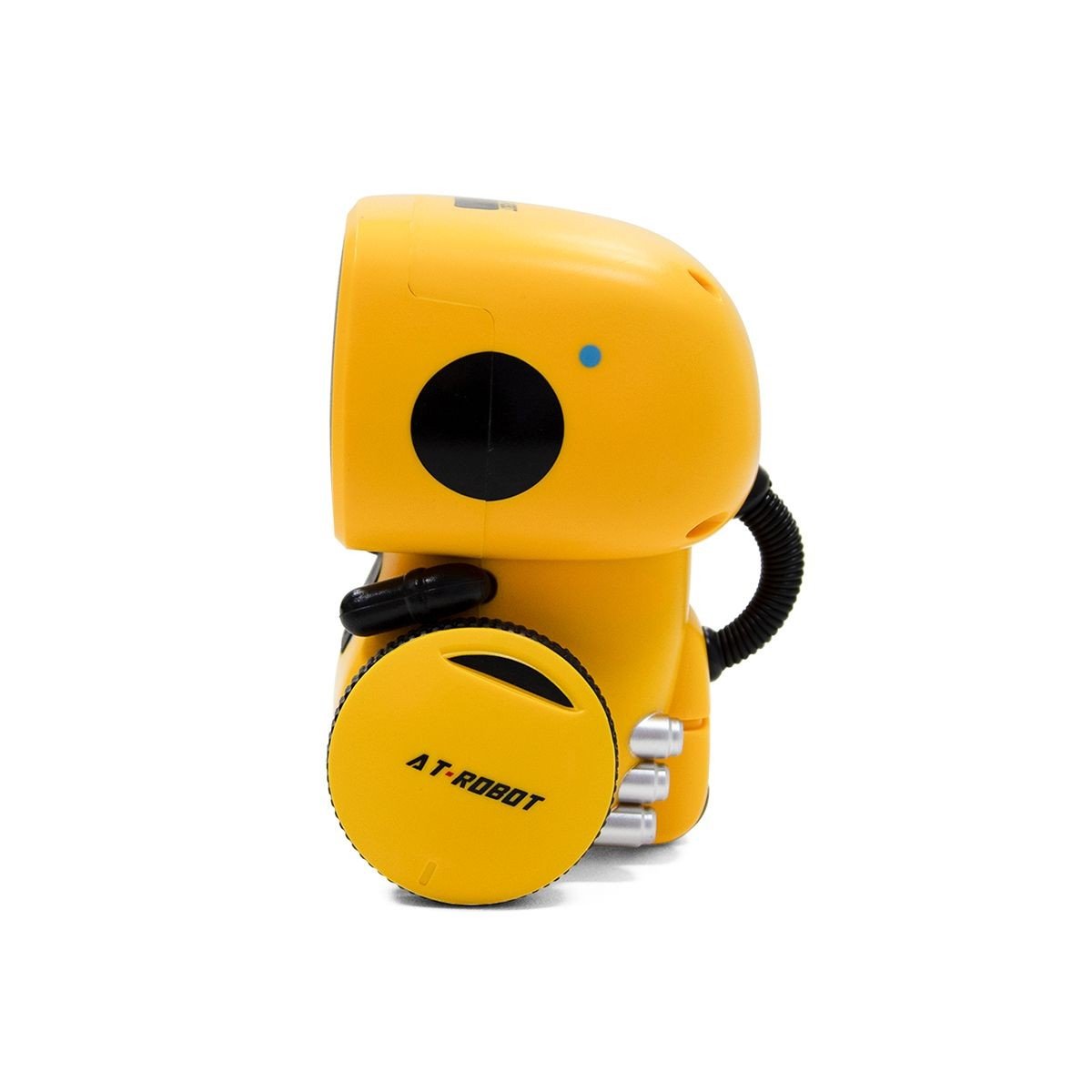 AT ROBOT - це розумний робот з різними видами керування. Розмовляє українською мовою. Реагує на голос: віддавайте команди українською мовою та задавайте напрямок руху, спілкуйтеся та веселіться з ним. Реагує на дотик: 3 сенсорні датчики, за допомогою яких робот буде взаємодіяти, спілкуватися та рухатися. Записує і повторює фрази: можна записати 3 голосових повідомлення. Танцює: 12 мелодій і танців, які не залишать нікого байдужим. Гучність регулюється: робіть музику та звуки голосніше чи тихіше за допомогою сенсорів (7 ступенів гучності). Висота робота - 12,5 см. Працює від 3-х батарейок ААА (до комплекту не входять). Містить пластикові, металеві та гумові деталі.