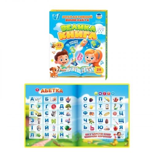 Інтерактивний віммельбух "Велика книга", сенсорні кнопки, абетка, казки, пісні, загадки, вікторина,