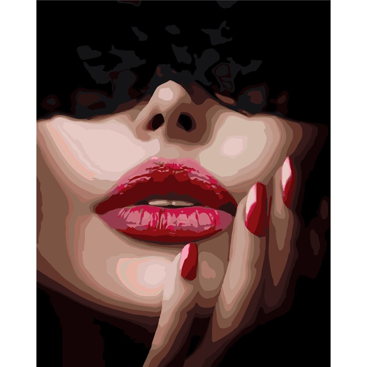 Опис Картина за номерами "Ажурна маска до червоних губ" 40х50 см
