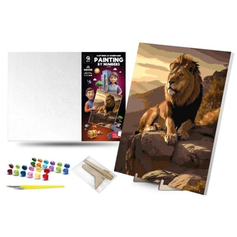 Опис Картина по номерах 40х50 см "Цар звірів" з деревʼяною підставкою