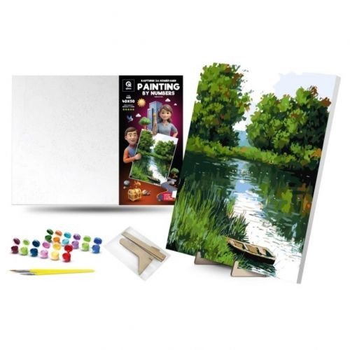 Опис Картина по номерах 40х50 см "Човен на річці"" з деревʼяною підставкою