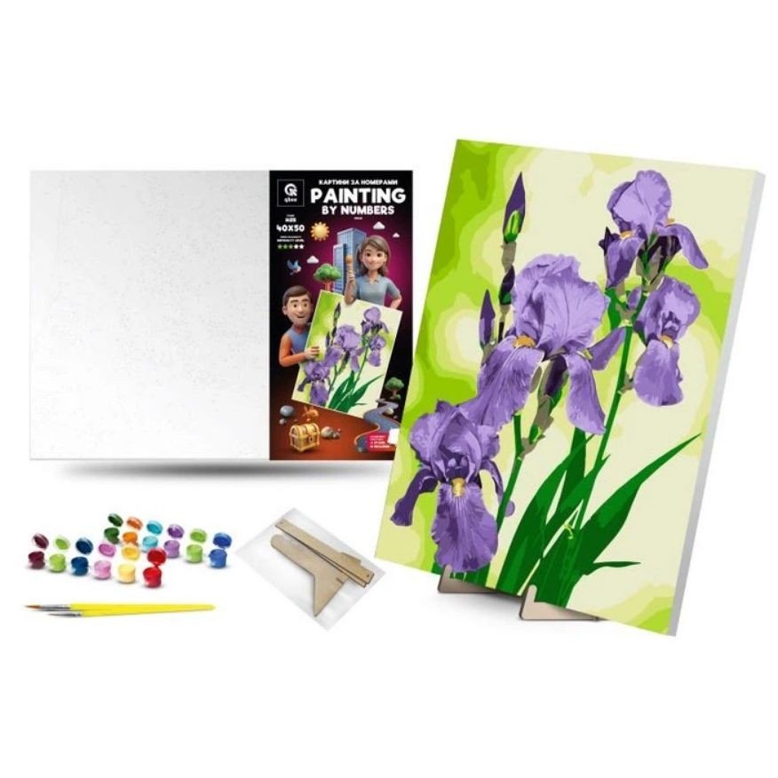 Опис Картина по номерах 40х50 см "Іриси" з деревʼяною підставкою