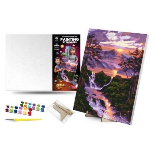 Опис Картина по номерах 40х50 см "Водоспад на світанку" з деревʼяною підставкою