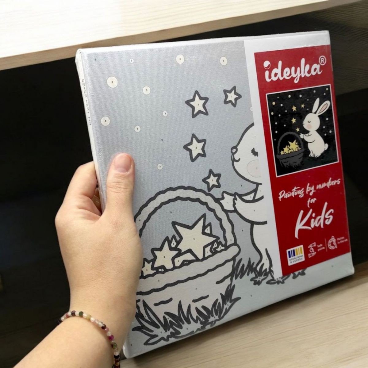 Картина за номерами. Для того, щоб намалювати картину, необхідно малювати за пронумерованими контурами, які відповідають кольору фарби. У наборі: полотно на підрамнику з галерейною натяжкою, паперовий дублікат з контурним малюнком картини (на картині нанесена схема контурів зображення з нумерацією), художні нейлонові пензлі, палітра акрилових фарб у контейнерах. Усі необхідні фарби вже в комплекті та не вимагають змішування. Розмір: 25х25 см.