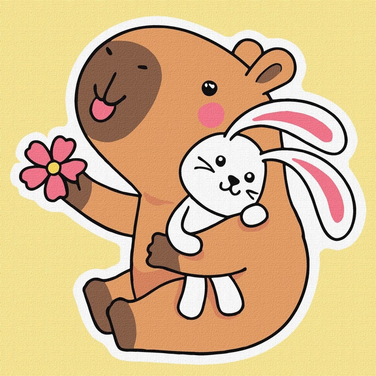 Опис Картина по номерах "Капібара із зайчиком" 30х30см