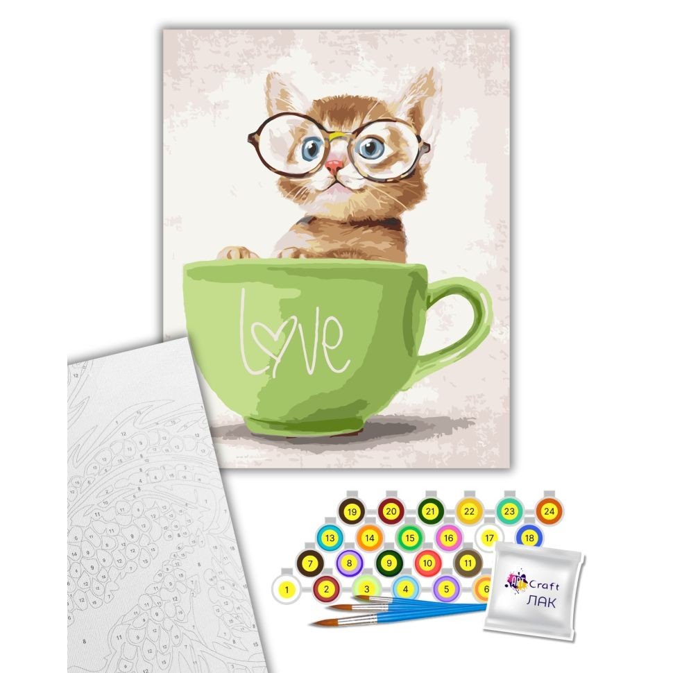 Опис Картина по номерах "Кошеня в чашці" 40х50 см