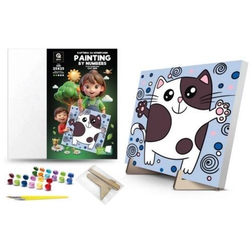 Опис Картина по номерах "Котячі обіймашки" (25х25 см) з деревʼяною підставкою
