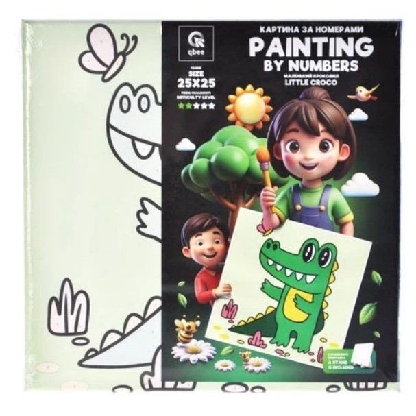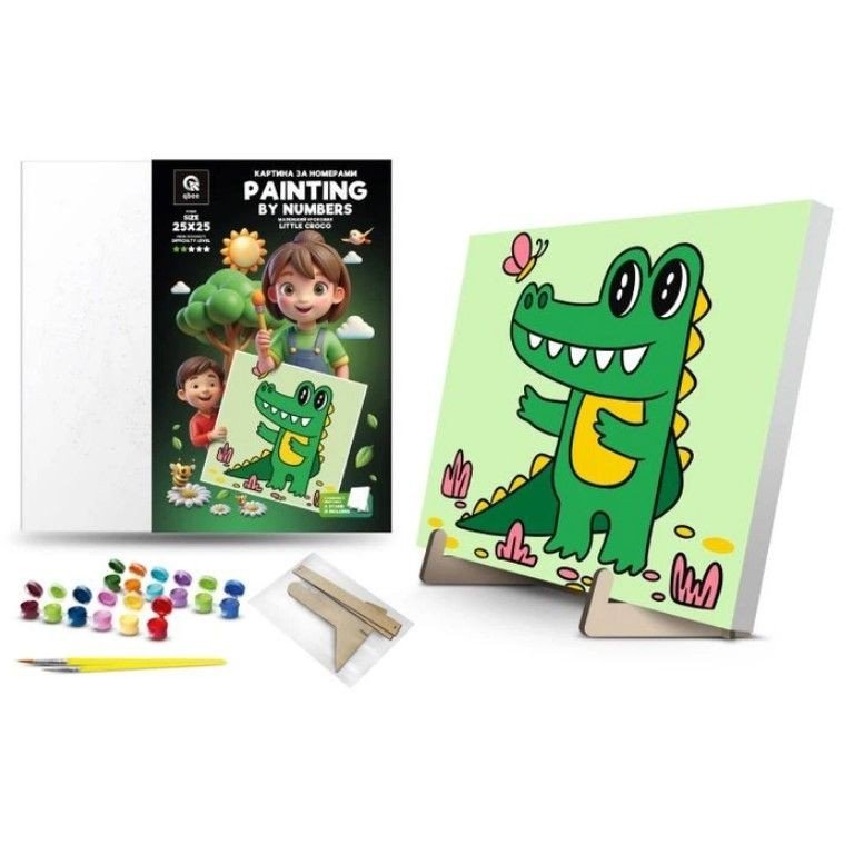 Опис Картина по номерах "Маленький крокодил" (25х25 см) з деревʼяною підставкою