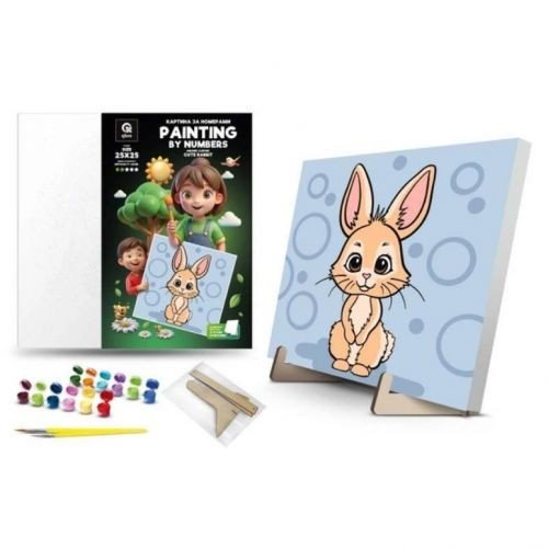 Опис Картина по номерах "Милий зайчик" (25х25 см) з деревʼяною підставкою