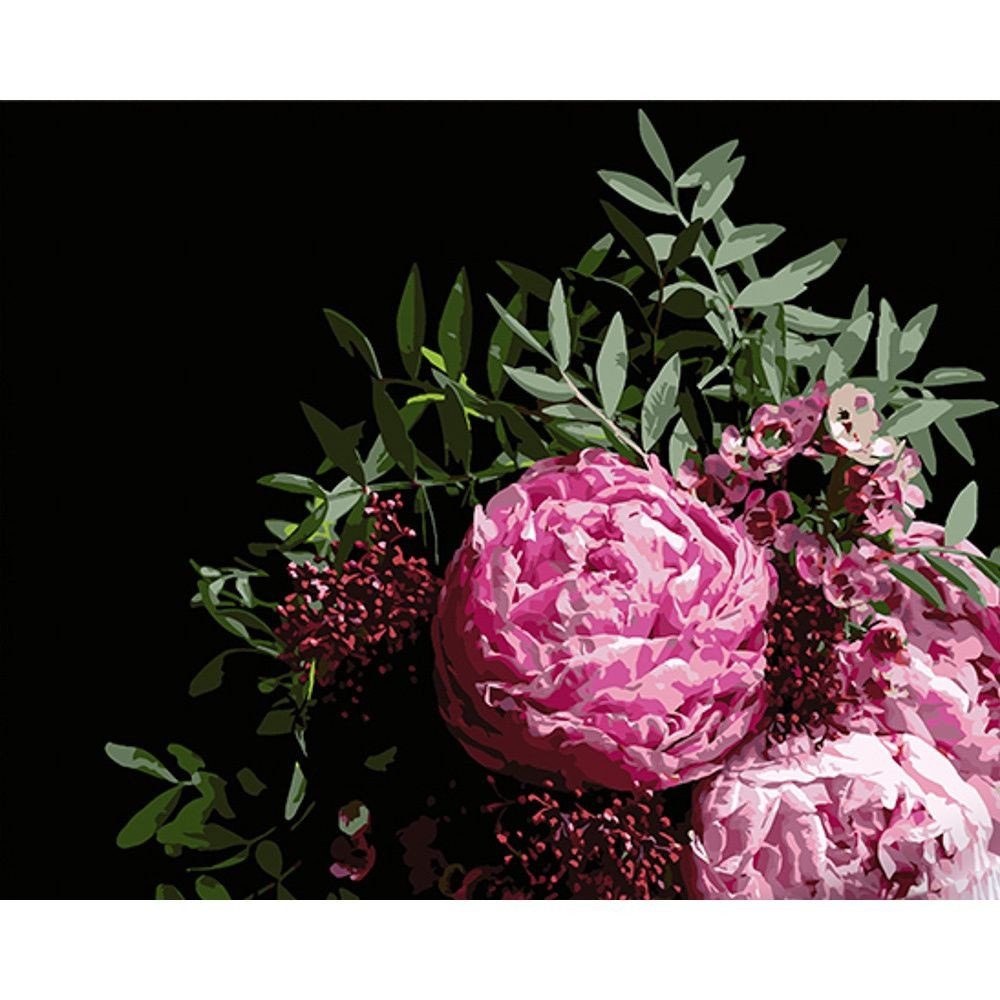 Опис Картина по номерах на чорному фоні "Букет рожевих півоній" 40х50 см