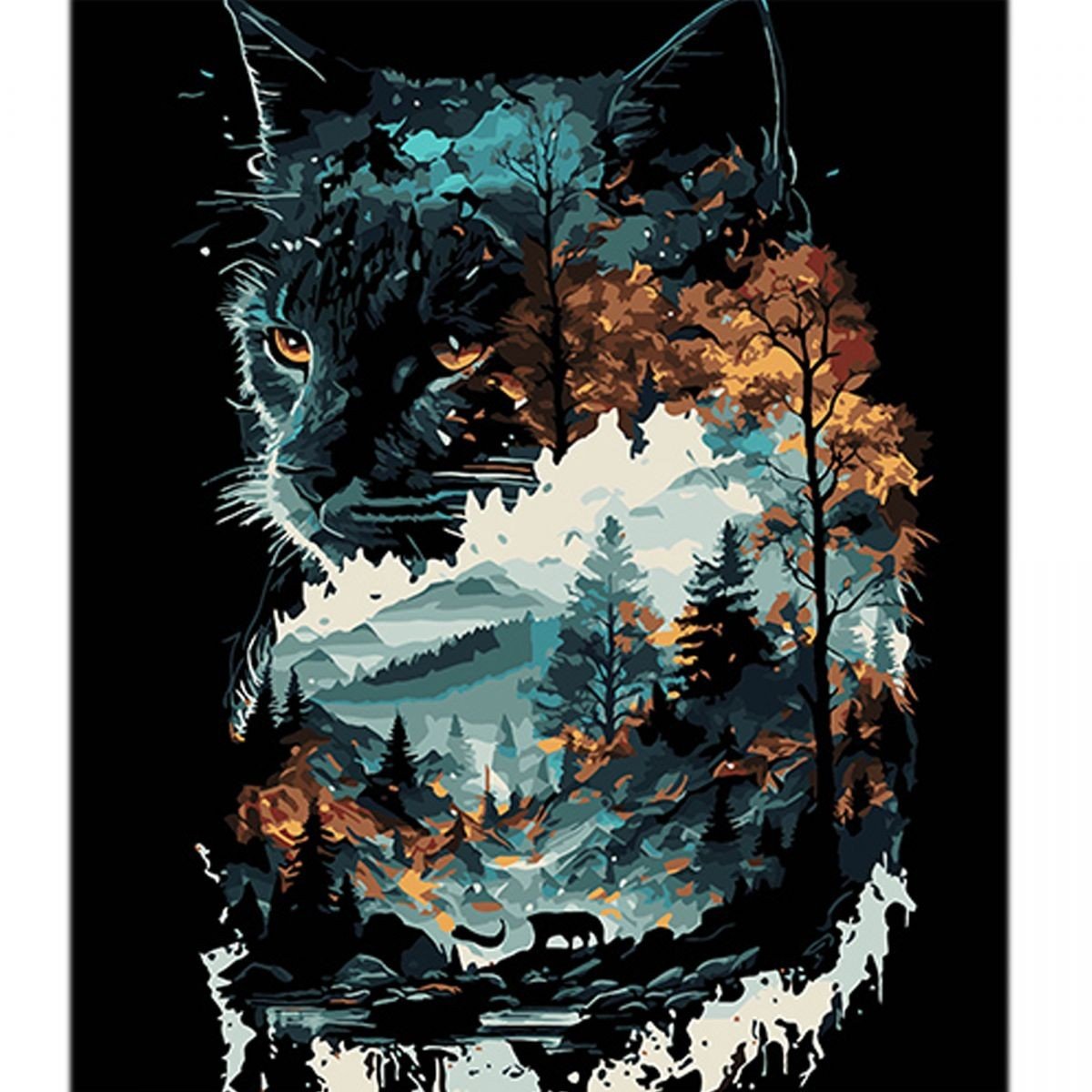 Опис Картина по номерах на чорному фоні "Кішка в подвійній експозиції" 40х50 см