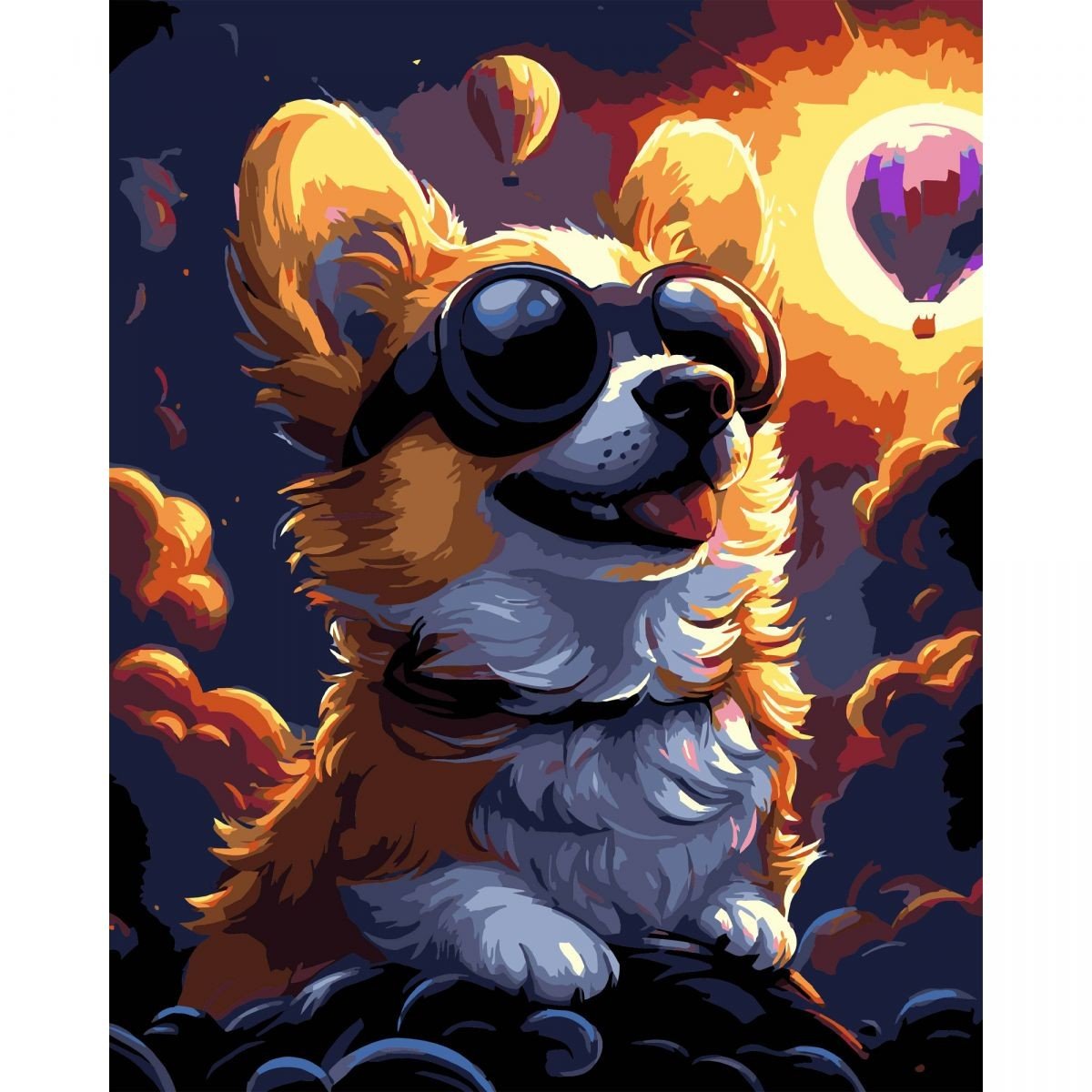 Опис Картина по номерах на чорному фоні "Коргі в окулярах" 40х50 см