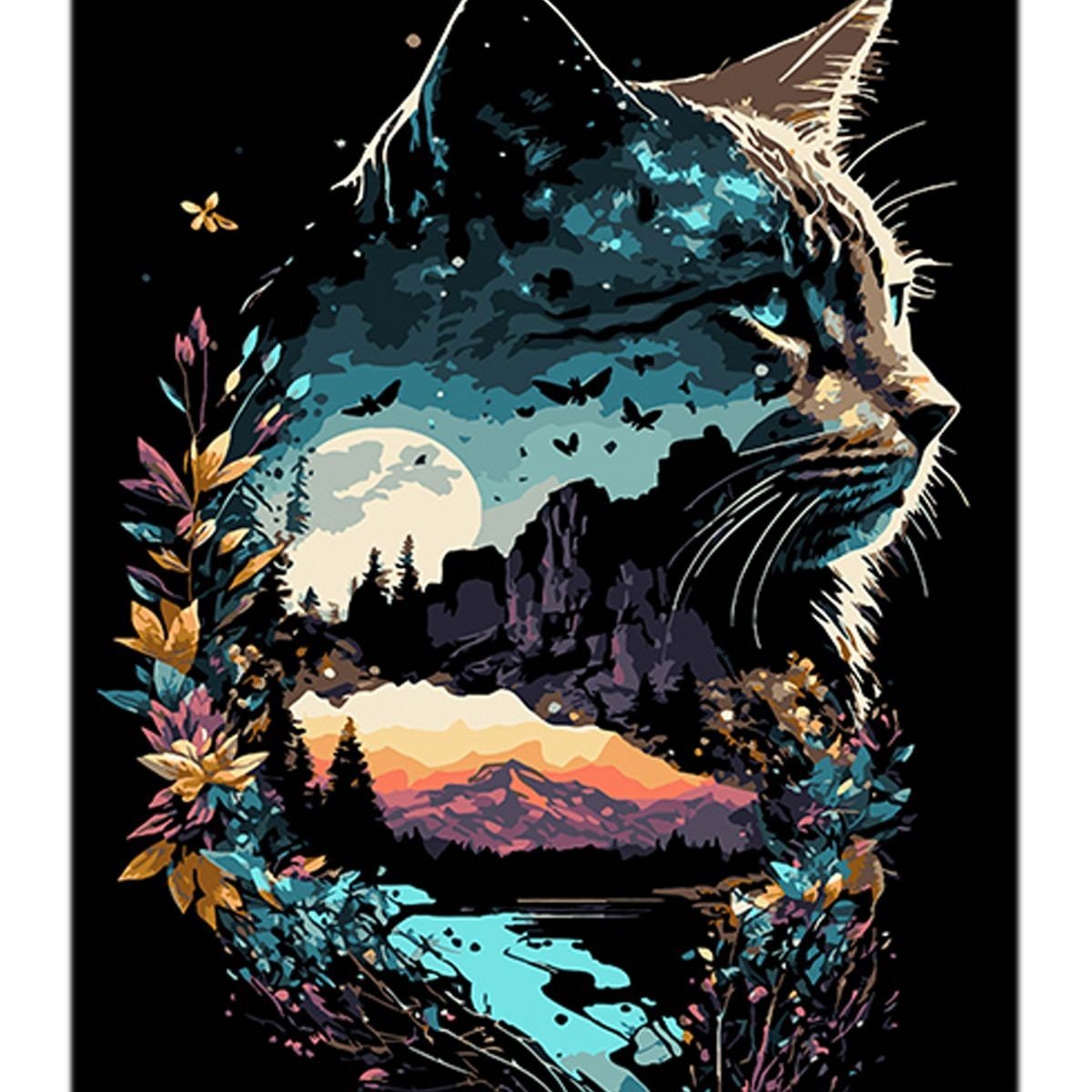 Опис Картина по номерах на чорному фоні "Котяче відображення природи" 40х50 см