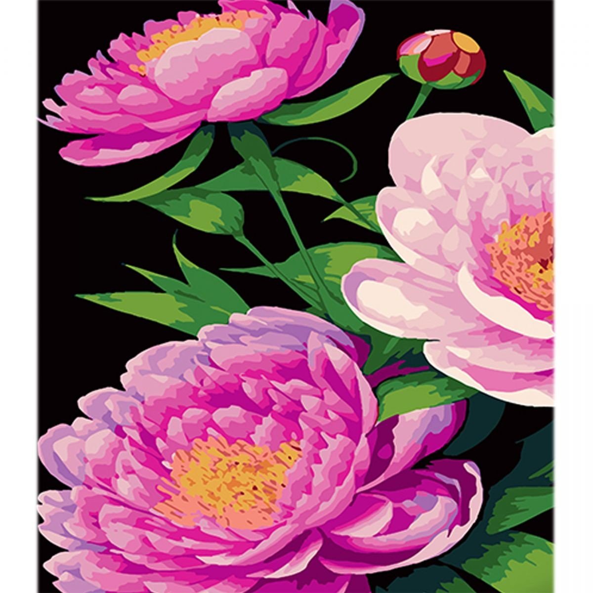 Опис Картина по номерах на чорному фоні "Півонії у відтінках рожевого" 40х50 см