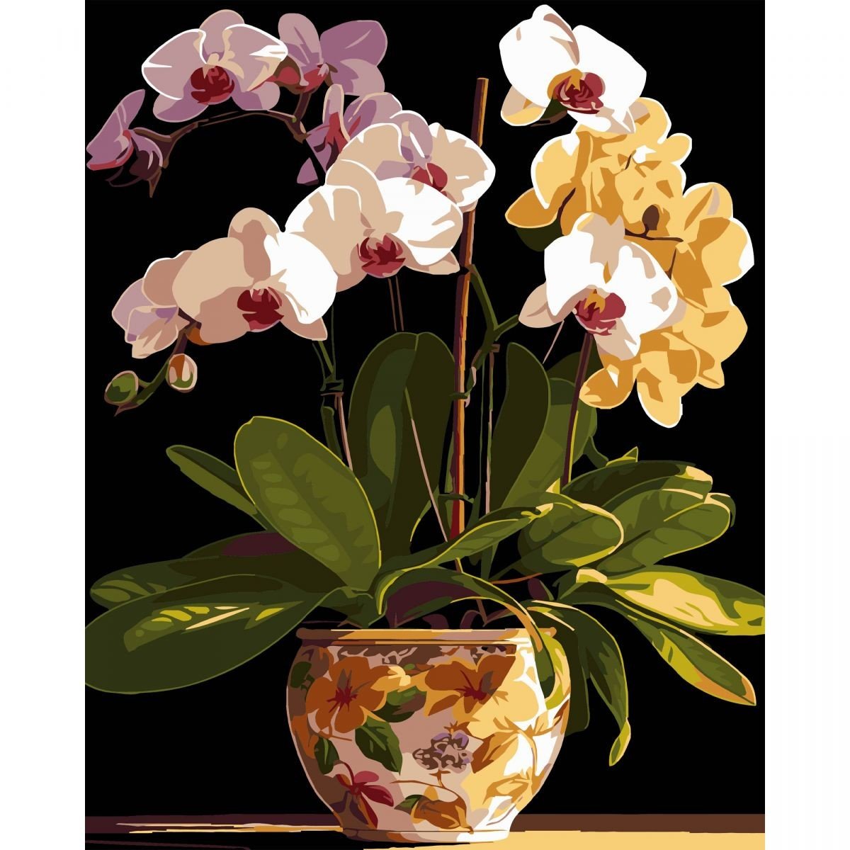 Опис Картина по номерах на чорному фоні "Вазон орхідей" 40х50 см