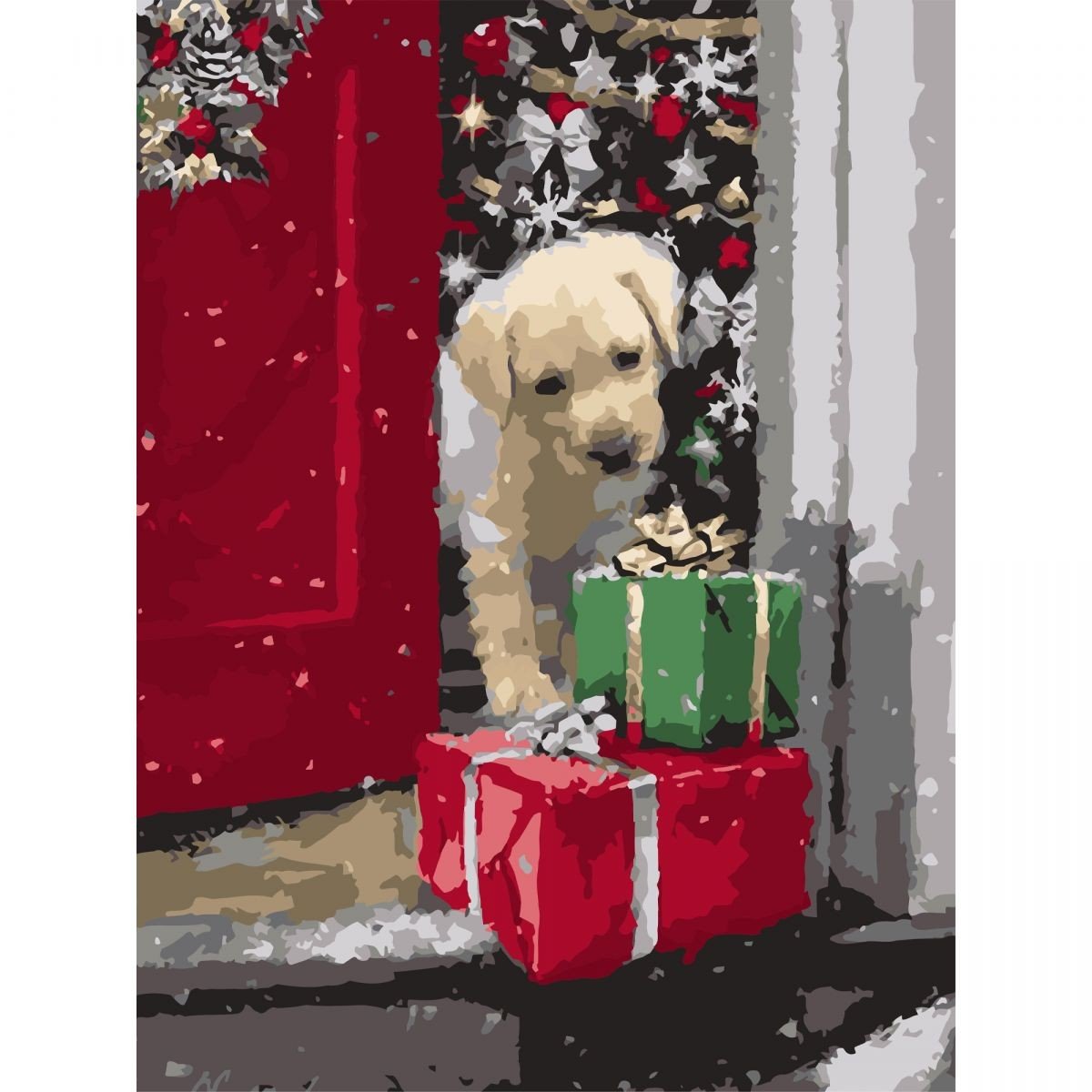 Опис Картина по номерах "Песик із подарунками" 30х40 см