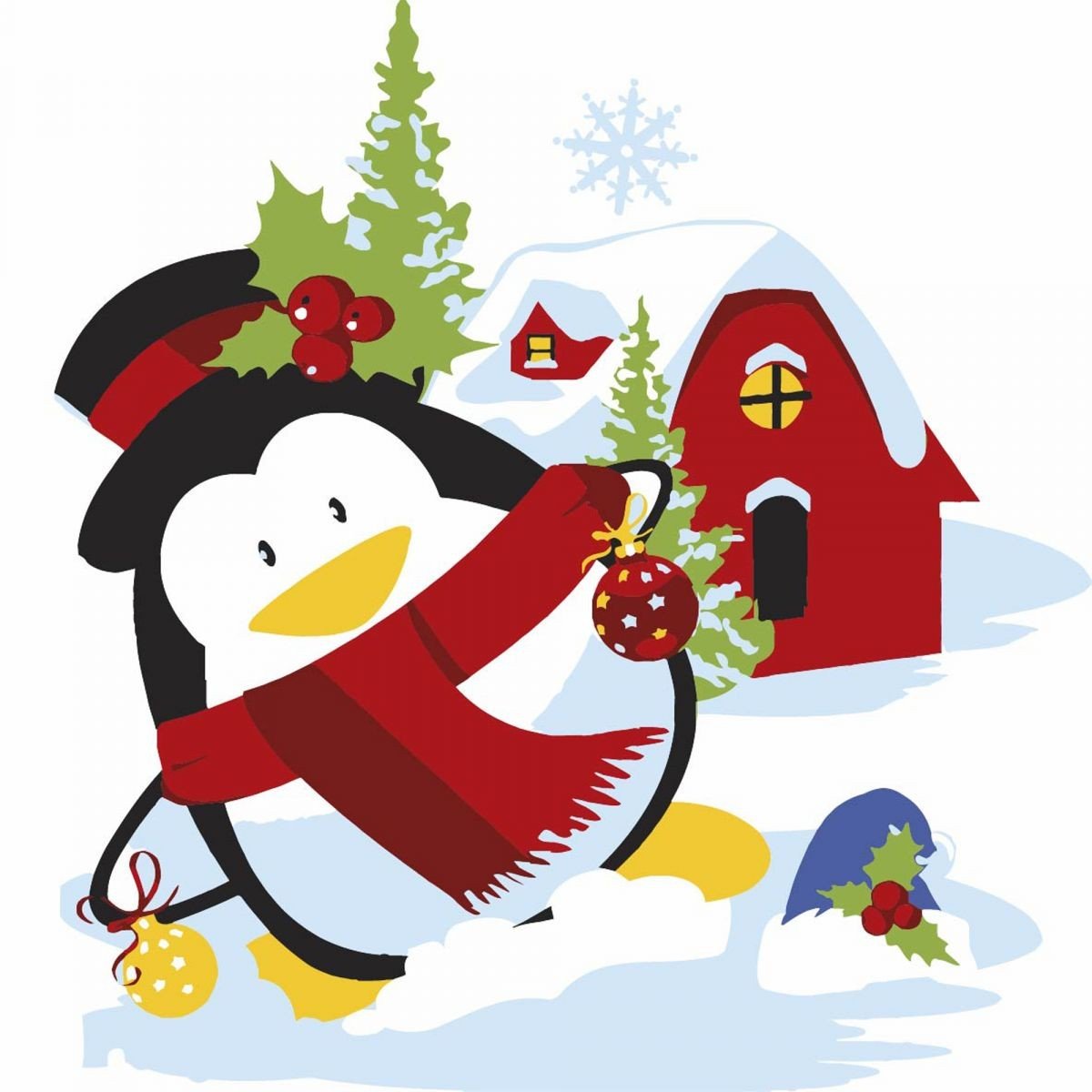 Опис Картина по номерах "Пінгвін біля будинку" 20х20 см