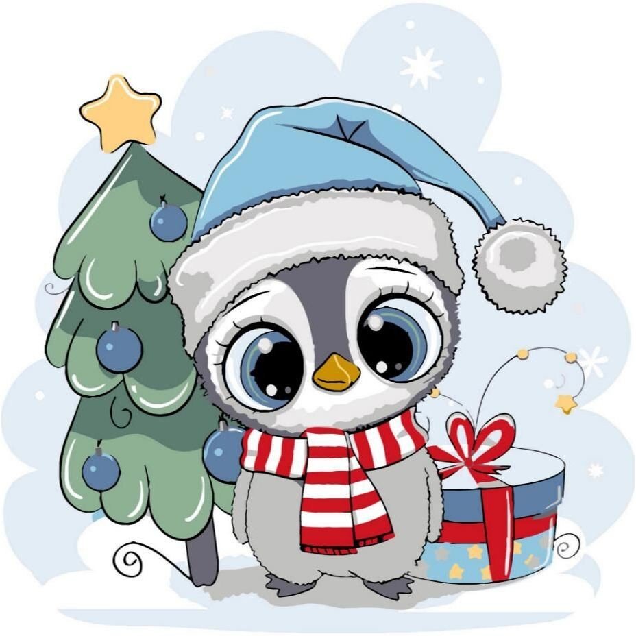 Опис Картина по номерах "Пінгвін біля ялинки" 30х30 см