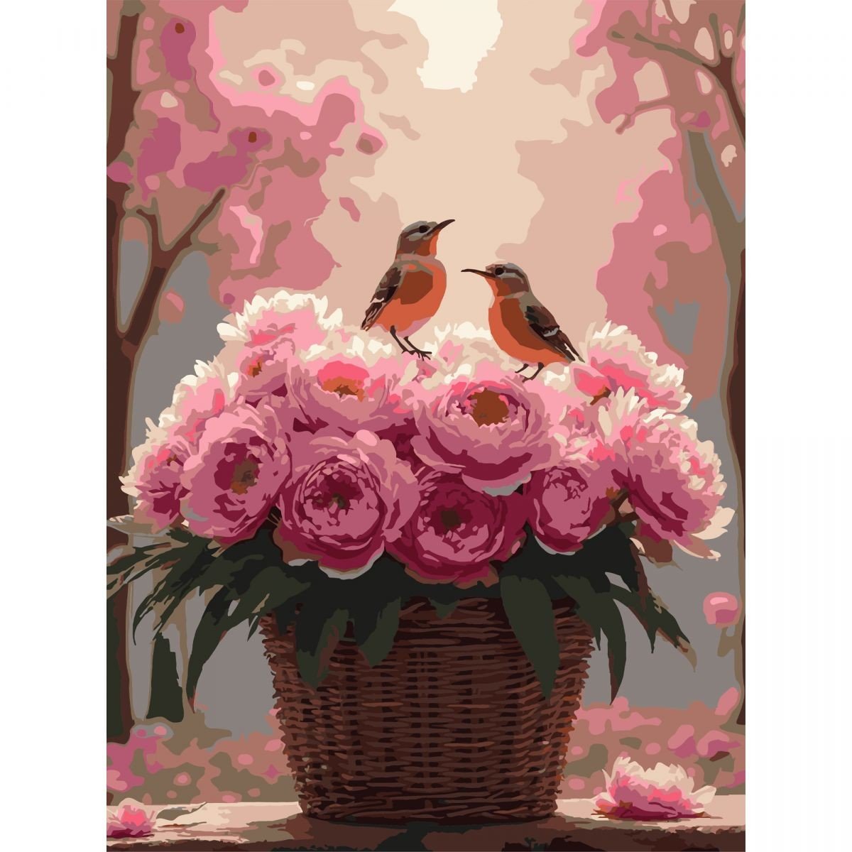 Опис Картина по номерах "Півонії з пташками" 30х40 см