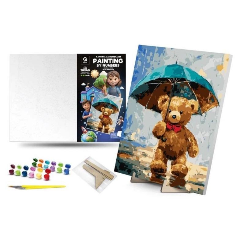 Опис Картина по номерах "Ведмежа і Дощ" (30х40 см) з деревʼяною підставкою