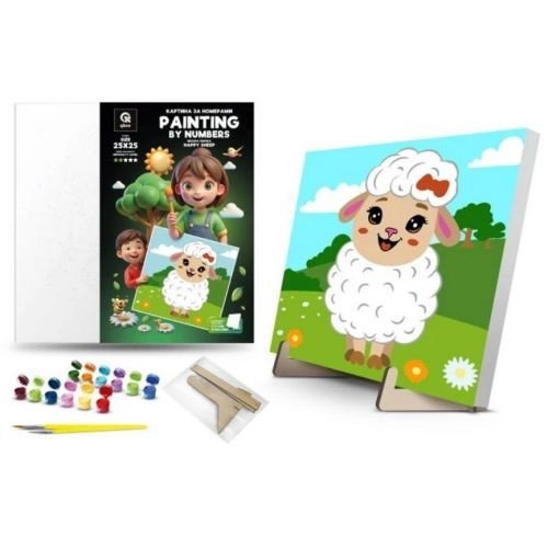 Опис Картина по номерах "Весела Овечка" (25х25 см) з деревʼяною підставкою