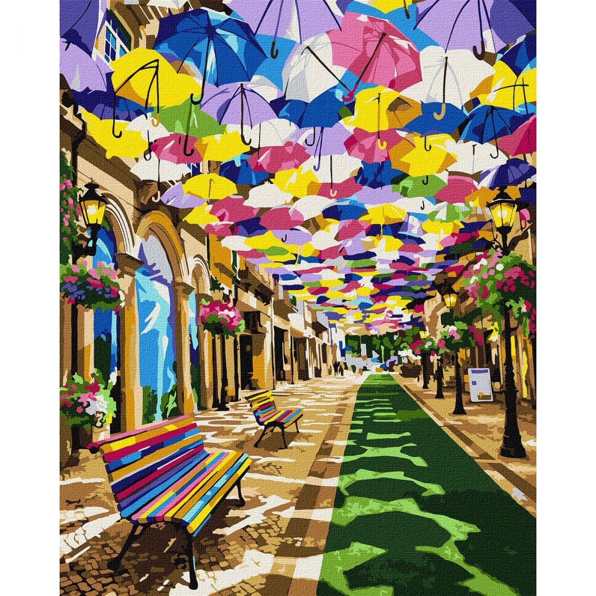 Картина по номерах "Вулиця кольорових парасольок" 40х50см
