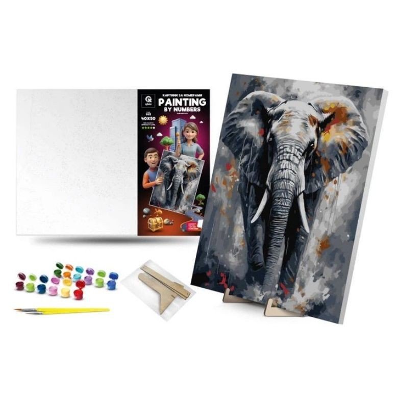 Опис Картина по номерах з фарбами металік 40х50 см "Величний слон" з деревʼяною підставкою