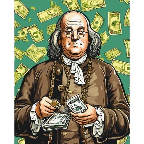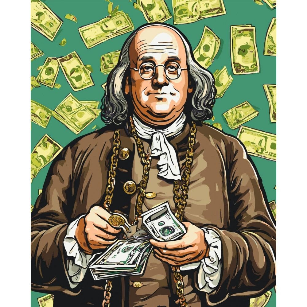 Опис Картина по номерах з фарбами металік "Бенджамін Франклін" 40х50 см