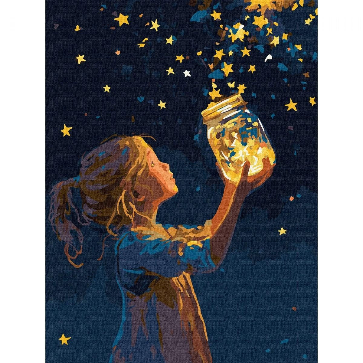 Опис Картина по номерах з фарбами металік "Дівчинка і зірочки" 30х40 см