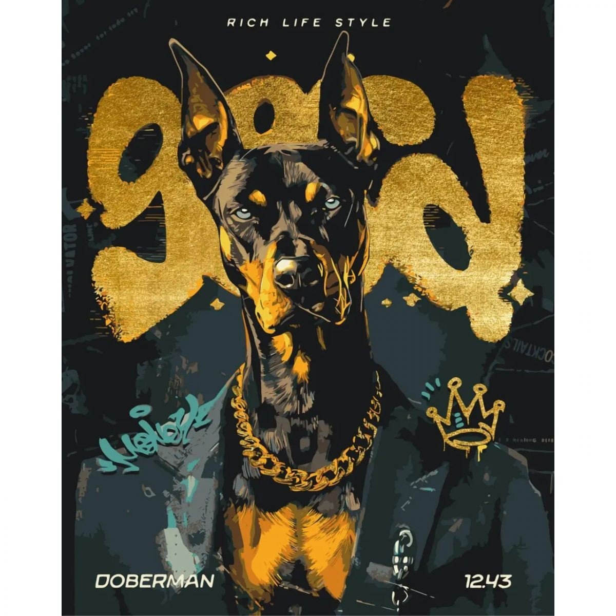 Опис Картина по номерах з фарбами металік "Доберман" 40х50 см