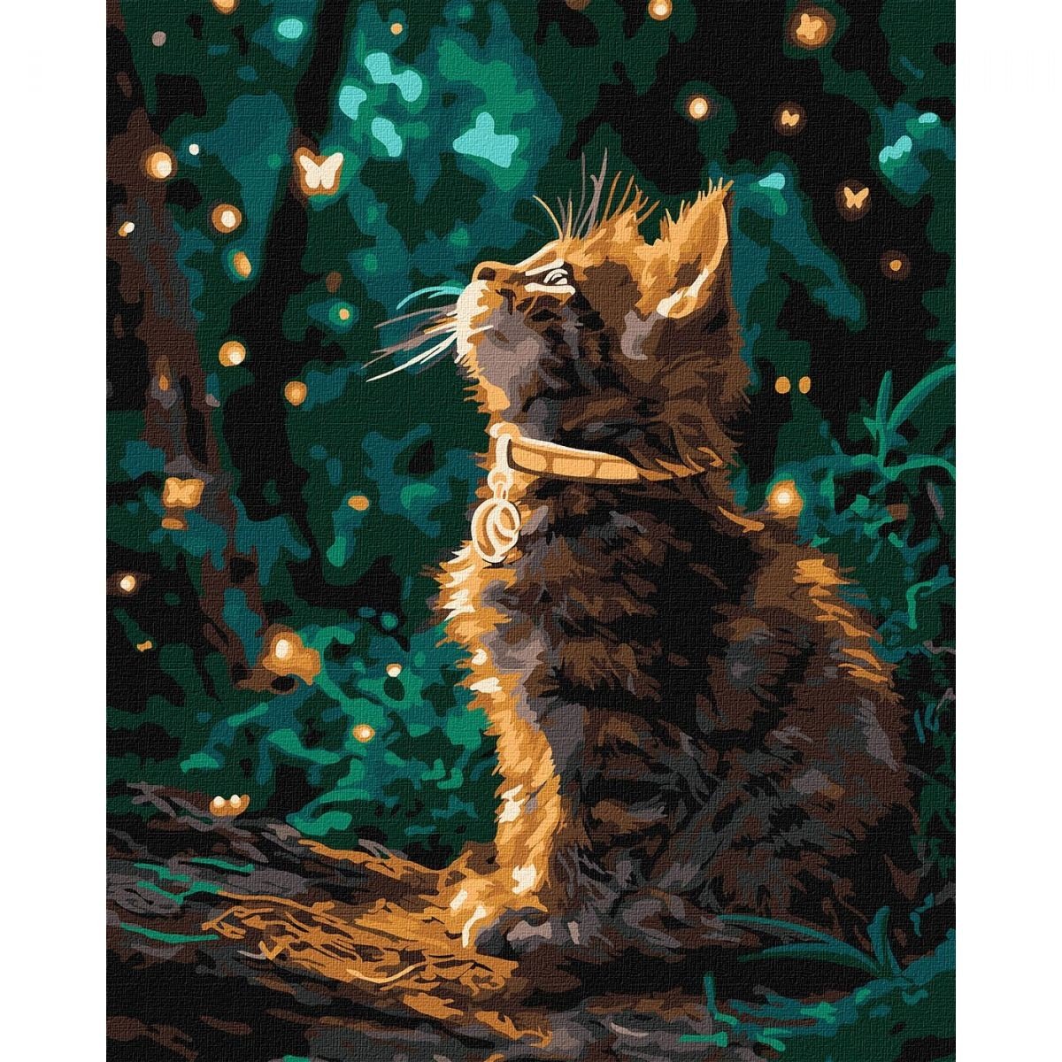 Опис Картина по номерах з фарбами металік "Кошеня та світлячки" 40х50см