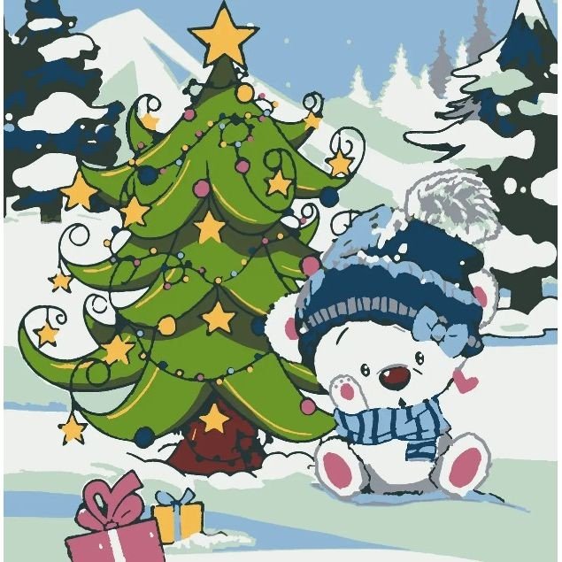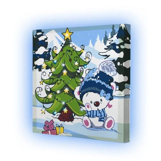 Опис Картина по номерах зі світлодіодною підсвіткою "Під ялинкою" 25x25 см