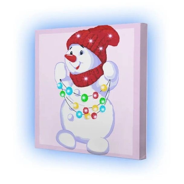 Опис Картина по номерах зі світлодіодною підсвіткою "Сніговик" 25x25 см
