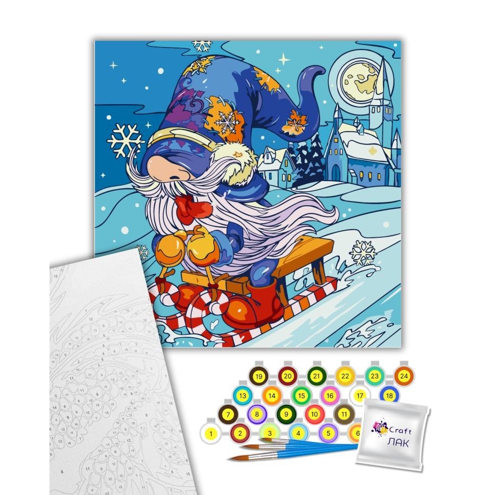 Картина за номерами. Для того, щоб намалювати картину, необхідно малювати за пронумерованими контурами, які відповідають кольору фарби. У наборі: полотно на підрамнику з галерейною натяжкою, паперовий дублікат з контурним малюнком картини (на картині нанесена схема контурів зображення з нумерацією), художні нейлонові пензлі, палітра акрилових фарб у контейнерах. Усі необхідні фарби вже в комплекті та не вимагають змішування. Розмір: 40х40 см.