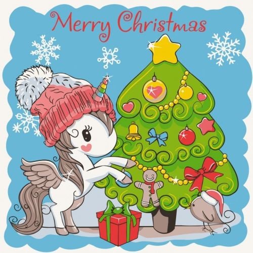 Опис Картина по номерам "Єдиноріжка з ялинкою" 30х30 см
