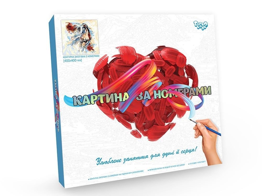 Картина за номерами "Біг".Для того, щоб намалювати картину, необхідно малювати по пронумерованим контурам, які відповідають кольору фарби. У наборі: натуральне полотно на підрамнику з галерейного натяжкою, паперова дублікат з контурним малюнком картини (на картині нанесена схема контурів зображення з нумерацією), 1 нейлонова художній пензель, палітра акрилових фарб в контейнерах. Всі необхідні фарби вже в комплекті і не вимагають змішування. Розмір: 40 х 40 см.
